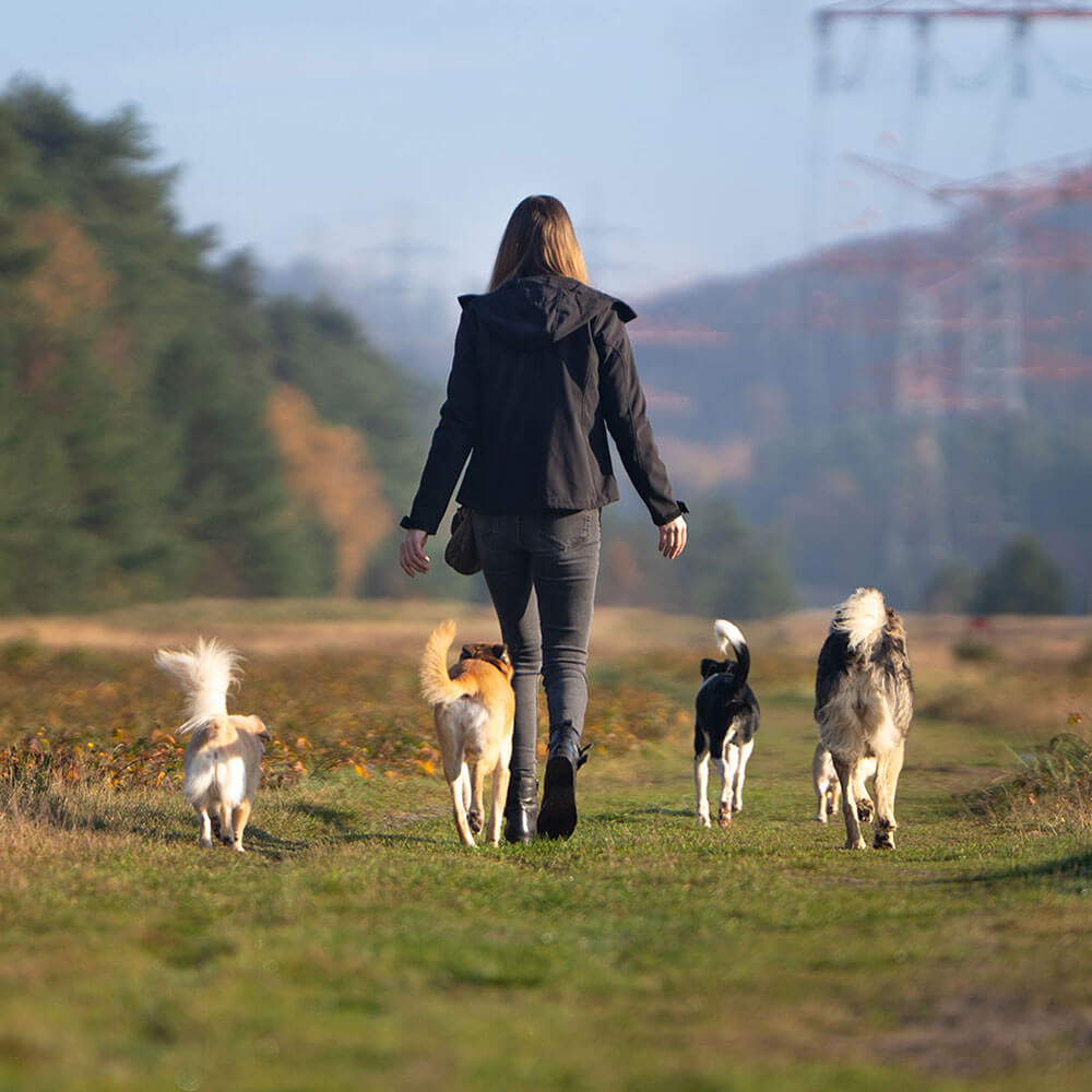 Bereits seit mehreren Jahren begleitet mich meine eigene kleine Hundegruppe bestehend aus Findus, Ellie, Lucy, Tokio und Pixel. Bin ich der Kopf des Unternehmens, so sind sie das Herz und die Seele, denn durch sie konnte und kann ich auch weiterhin sehr viel über Hunde lernen. Alle fünf sind sehr individuelle Charaktere, die ganz eigene Bedürfnisse haben und doch bilden sie eine für mich perfekte Hundegruppe. Zusätzlich zu meinen eigenen Hunde betreue ich auch immer wieder Pflegehunde aus dem Inlands- und Auslandstierschutz. Dadurch habe ich viel Erfahrung in der Zusammenstellung und dem Management von Hundegruppen, in denen verschiedene Charaktere aufeinander treffen und ich weiß auch, wie unterschiedlich die Ansprüche der einzelnen Charaktere im Zusammenleben mit dem Menschen sind.